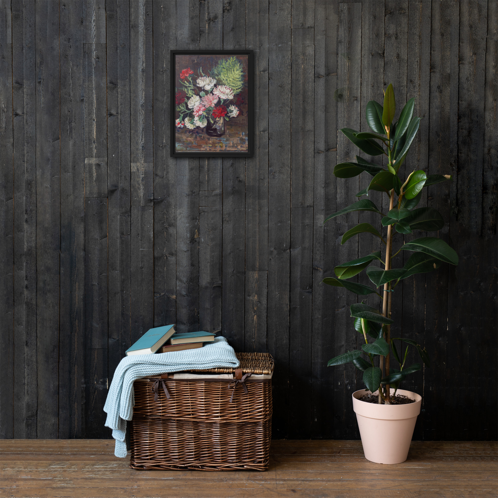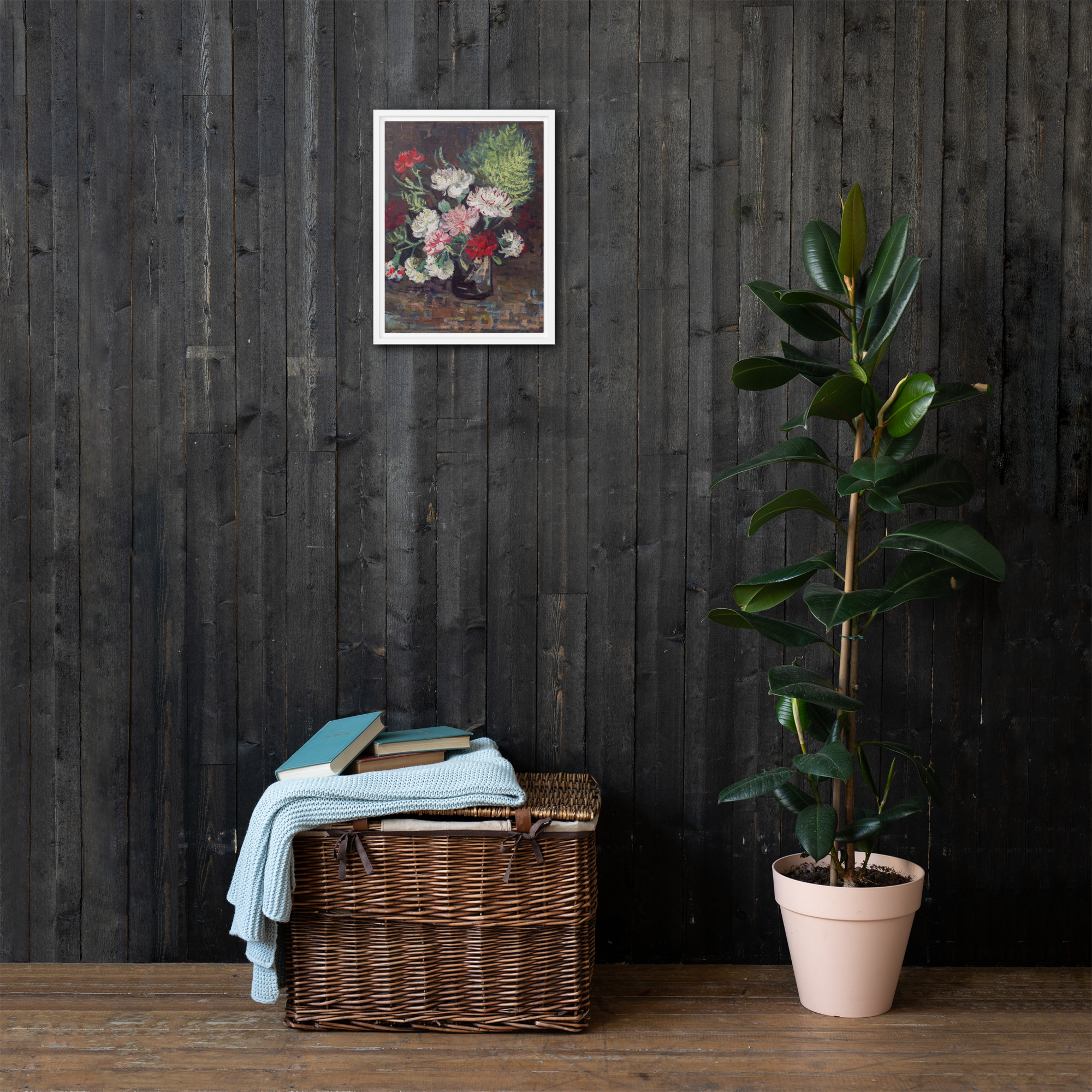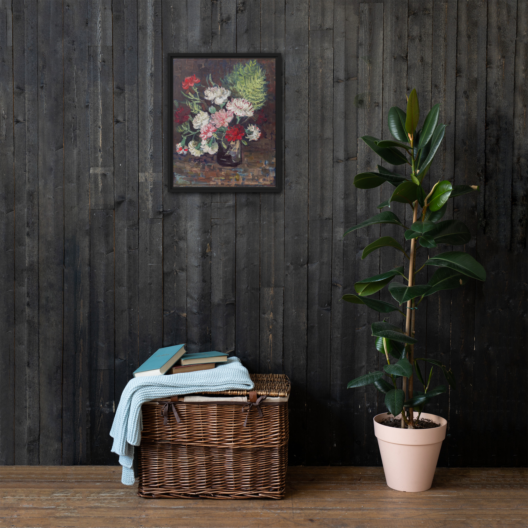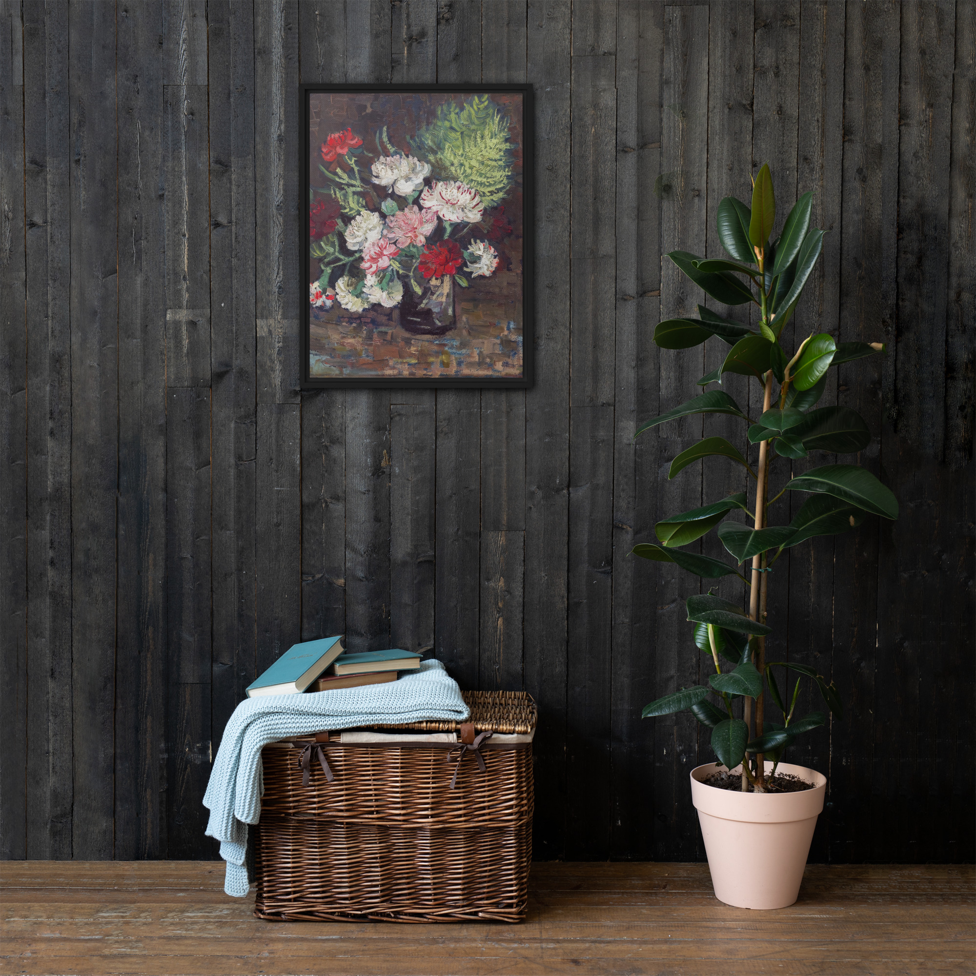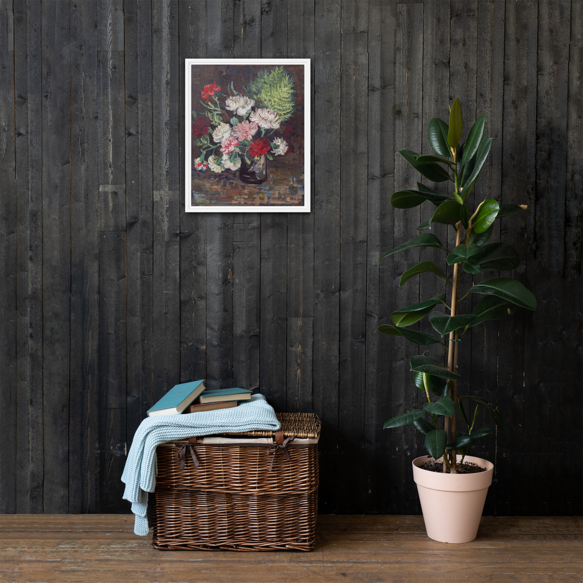 “Vase with Carnations” by Vincent van Gogh is a beautiful painting that showcases the artist’s unique style and love of color. The artwork features a vase filled with vibrant carnations in shades of pink, white, and red. The use of thick brushstrokes and bold colors creates a sense of movement and energy, making the flowers appear as though they are alive and dancing in the vase. The painting is rendered with Vincent van Gogh’s signature impasto technique, with each brushstroke visible and adding to the overall texture and depth of the piece. The result is a stunning work of art that captures the essence of beauty and vitality. Printed on high-quality materials, this artwork is the perfect addition to any art collection or interior design project, adding a touch of color and energy to any space.