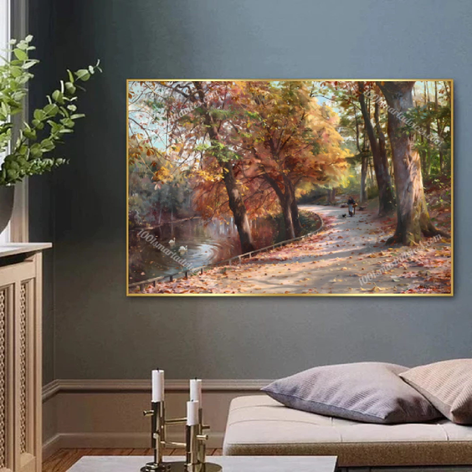 The Lake and Its Reflections: The water becomes a study in stillness and reflection. You can trace how Mønsted captured the mirror‑like surface, the trembling images of autumn trees, and the fallen leaves that float like tiny boats. The gradations of colour—from the deep olive near the bank to the cooler blues of open water—are rendered with seamless clarity.