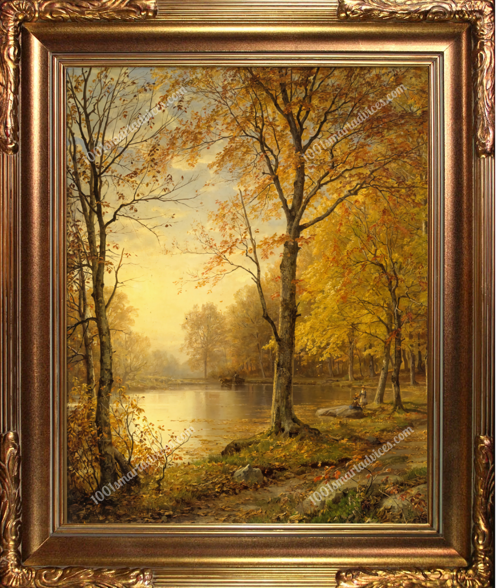 “Indian Summer” captures the essence of nature’s poetry. Richards, known for his ability to evoke emotion through landscapes, presents a scene bathed in the gentle, golden glow of late autumn. Every detail of the original masterpiece, from the rustling leaves to the still waters, is preserved in this digital rendition.