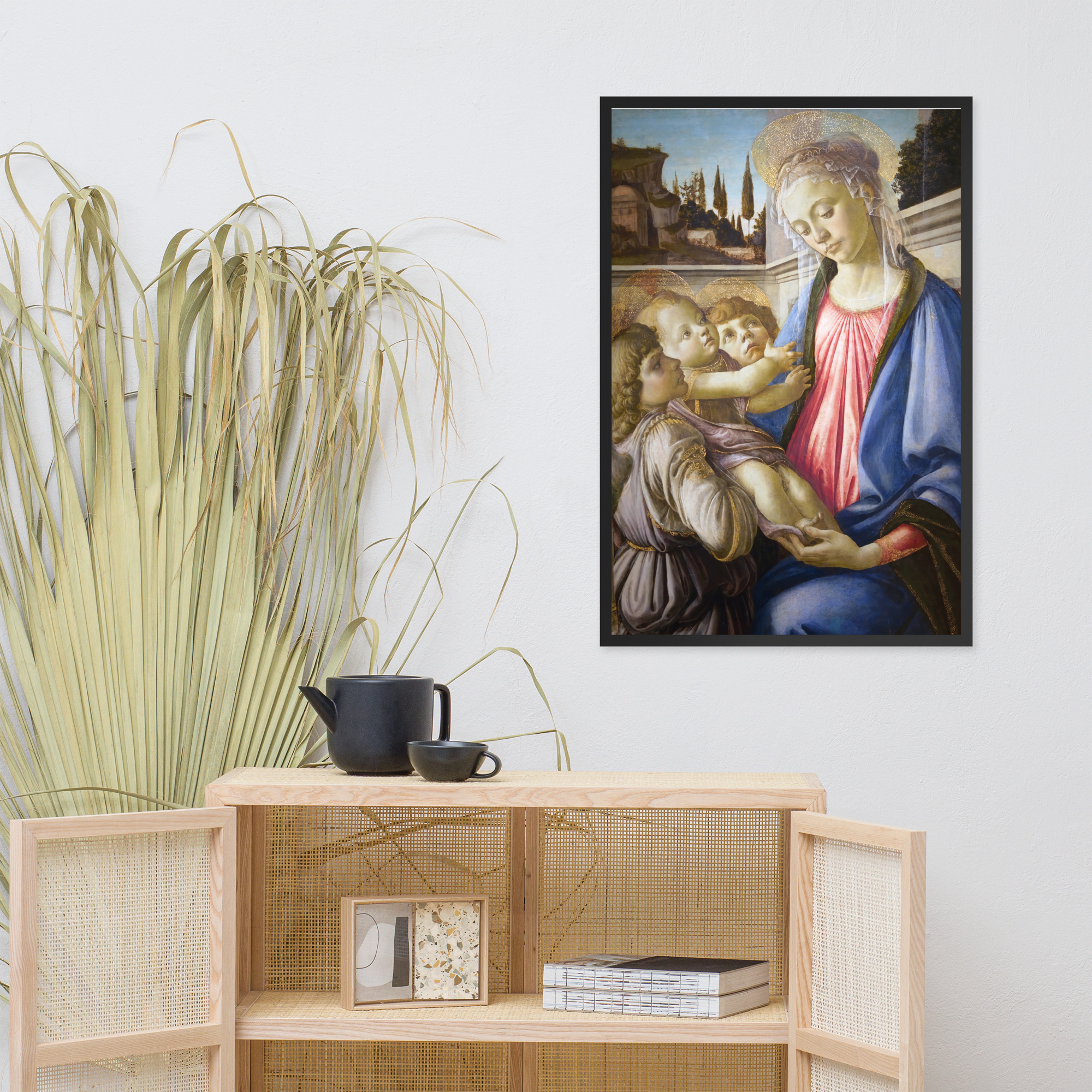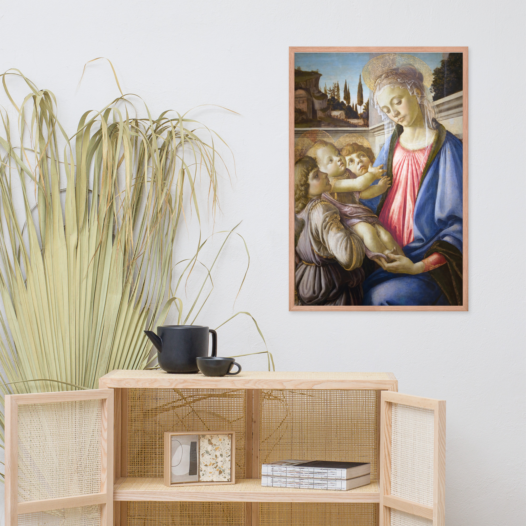 Elevate your home or office decor with this stunning digital artwork that captures the eternal beauty of Botticelli’s “Madonna and Child and Two Angels” and brings a sense of serenity and grace to any space.