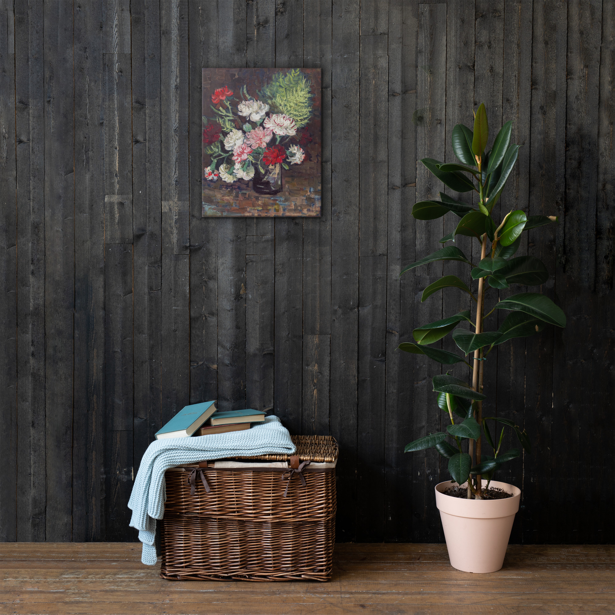 “Vase with Carnations” by Vincent van Gogh is a beautiful painting that showcases the artist’s unique style and love of color. The artwork features a vase filled with vibrant carnations in shades of pink, white, and red. The use of thick brushstrokes and bold colors creates a sense of movement and energy, making the flowers appear as though they are alive and dancing in the vase. The painting is rendered with Vincent van Gogh’s signature impasto technique, with each brushstroke visible and adding to the overall texture and depth of the piece. The result is a stunning work of art that captures the essence of beauty and vitality. Printed on high-quality materials, this artwork is the perfect addition to any art collection or interior design project, adding a touch of color and energy to any space.